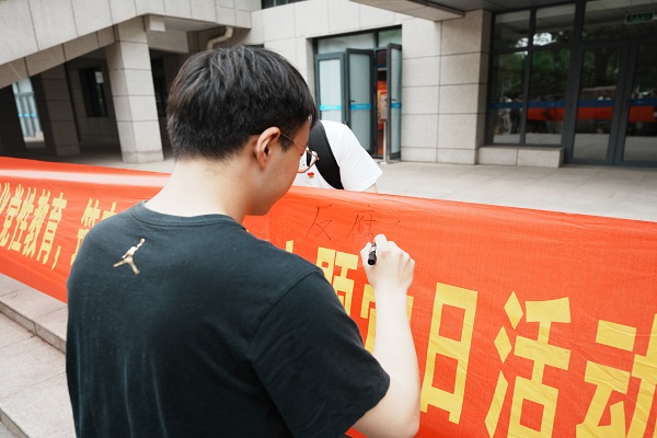 在橫幅上書寫原創(chuàng)“清風在心”廉潔標語