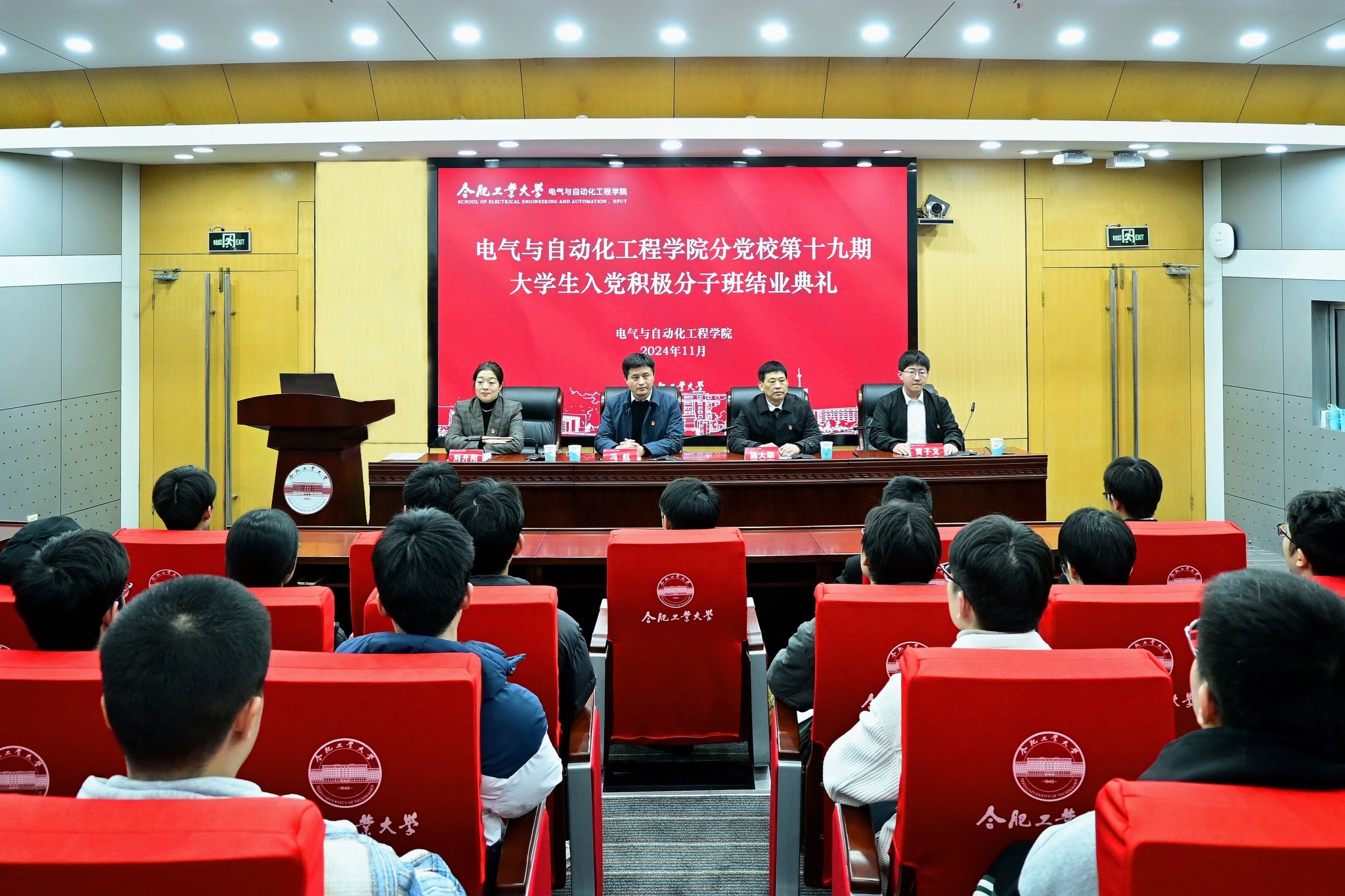 11月27日晚,電氣與自動(dòng)化工程學(xué)院分黨校第十九期大學(xué)生入黨積極分子培訓(xùn)班結(jié)業(yè)典禮在學(xué)術(shù)會(huì)議中心二樓小報(bào)告廳舉行。學(xué)院黨委書記、分黨校校長馮航、副處級(jí)組織員施大順、學(xué)生工作辦公室主任兼團(tuán)委書記劉開陽、積極分子班班主任及全體學(xué)員參加典禮。